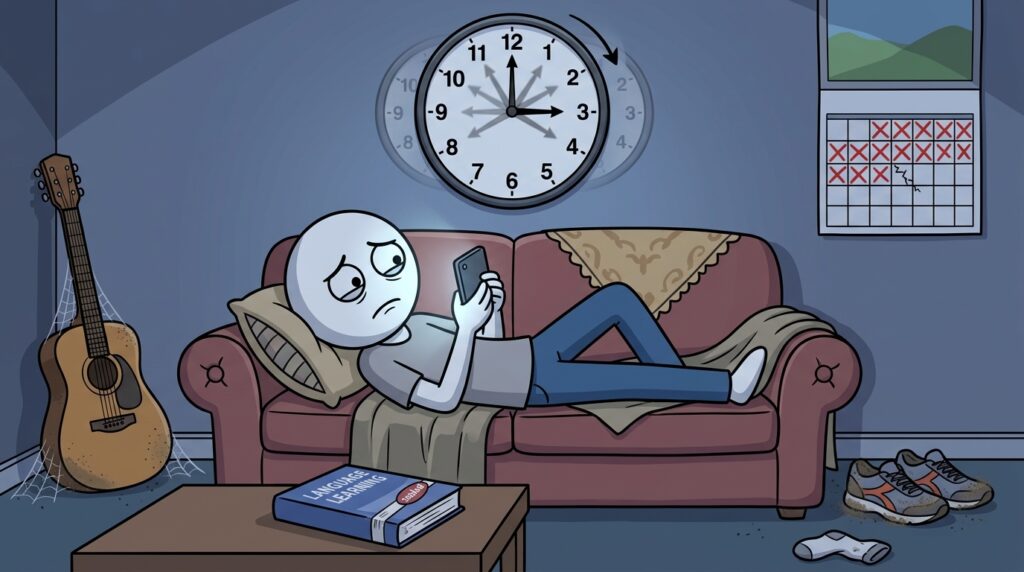 이 방식의 가장 큰 문제는 지속 가능성을 고려하지 않는다는 점입니다. 사람의 집중력과 생활 패턴은 생각보다 제한적입니다. 갑작스럽게 높은 기준을 적용하면 뇌는 이를 위협으로 인식하고 자연스럽게 회피하려 합니다. 그래서 며칠 동안은 잘 유지되다가 어느 순간 하루를 쉬게 되고, 그 하루가 무너지면서 전체 계획이 포기되는 흐름으로 이어집니다. 결국 자기계발을 오래 못 하는 사람들은 노력을 안 하는 것이 아니라, 지속할 수 없는 방식으로 노력하고 있는 경우가 많습니다. 꾸준함은 강한 의지에서 나오는 것이 아니라 부담 없는 반복 구조에서 만들어진다는 사실을 놓치고 있는 것입니다.